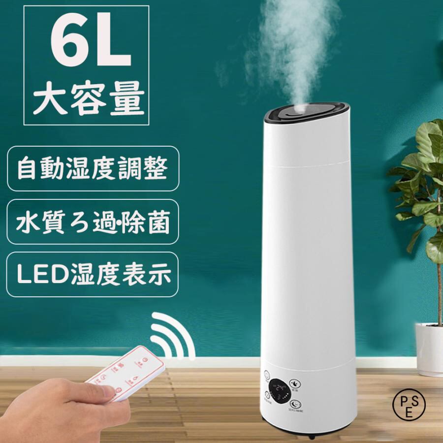 加湿器 超音波式 除菌 長時間 空気加湿機 6L 大容量 おしゃれ アロマ 大型 定時 アロマディフューザー アロマ対応 卓上 リモコン付 上から給水 空焚き防止