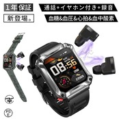 【イヤホン付き】スマートウォッチ 通話機能 血圧測定 血糖値 日本製センサー 心拍数 高音質イヤホン 録音機能 メンズ 腕時計 着信通知 敬老の日 プレゼント
