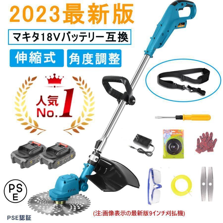 草刈り機 充電式 電動草刈機 コードレス マキタ18Vバッテリーを対応 9インチ刈払機 ブラシレスモータ付き 軽量 枝切り 芝生庭 敷地 畑 雑草 2023年モデル
