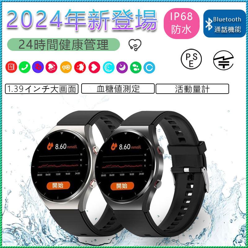 スマートウォッチ 血糖値 2024最新型 日本製センサー 心臓図EG+PG 24時間健康管理 けつ圧 けっ中酸素 心拍数 歩数計 睡眠検測 IP68防水 夏祭り プレゼント