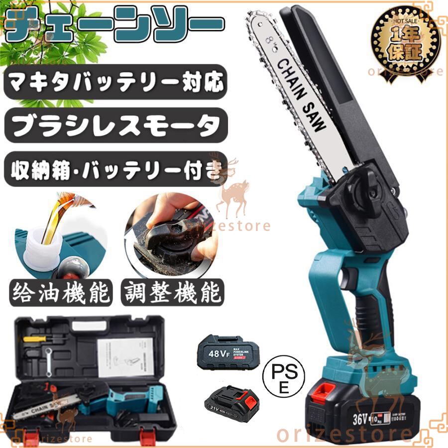 充電式チェーンソー マキタ 18vバッテリー互換対応 6インチ 8インチ 電動チェーンソー バッテリー付き 収納箱付き 自動給油 工具レスチェーン調整 強力 片手