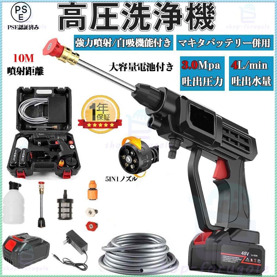高圧洗浄機 充電式 コードレス マキタバッテリー大容量バッテリー付き 互換 3.0MPa ポータブル 洗車 ガン 自吸式 強力噴射 小型 軽量 電動工具 家庭用