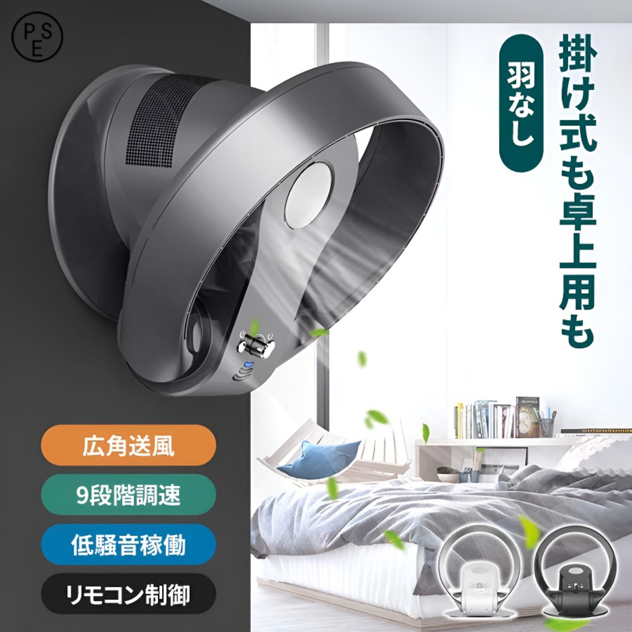 扇風機 2024最新 卓上 サーキュレーター dc 壁掛け 羽なし 9段階風量調節 首振り 角度調節 上下左右 タイマー機能 リモコン付き 省エネ 安心 安全 おしゃれ