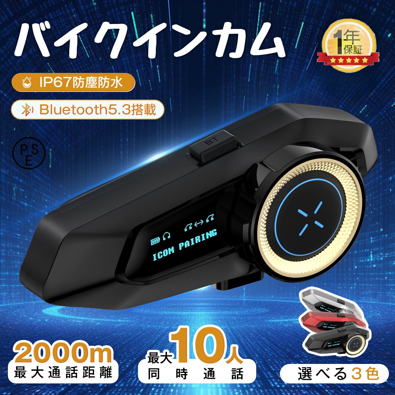 バイクインカム Bluetooth 5.3 液晶表示 バイク用 最大10人同時通話 最大通話距離2000m 音楽共有 音声アシスタント IP67防塵防水 インカム 長持続時間 FMラジオ