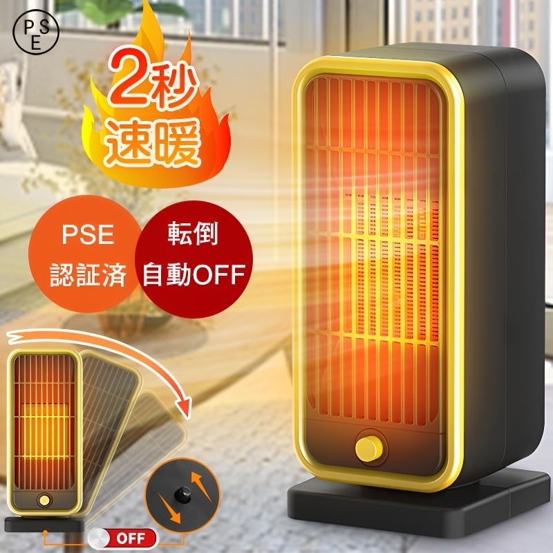 セラミックヒーター 小型 転倒自動OFF 2秒速暖 静音 過熱保護 ファンヒーター 電気 暖房器具 省エネ 足元ヒーター デスク下 ヒーター 節電 500w 無臭 温風
