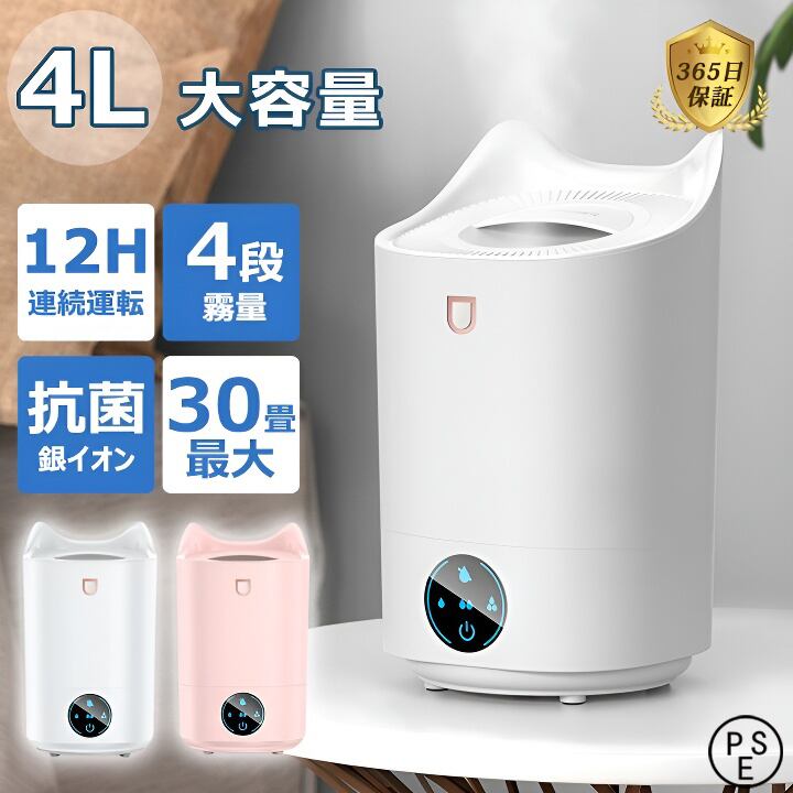 </p>4Lの超大容量加湿器は、タンクを頻繁に補充することなく、お部屋の湿度を快適に保ちたい方に最適です。超音波で水を振動させてミスト化し、作動直後から蒸気を放出する加湿器です。超微細な霧状の水を放出し、蒸発率が非常に高いため、室内に水が溜まる心配がありません。38dB以下の静音設計で、仕事や睡眠には全く妨げない静音加湿器です。<br>